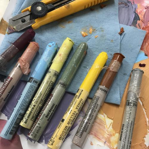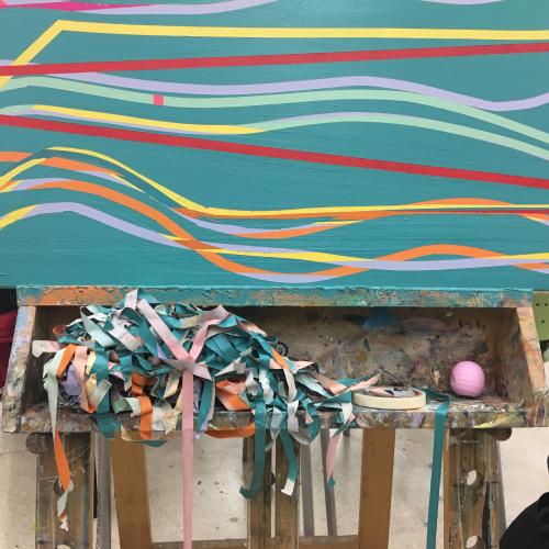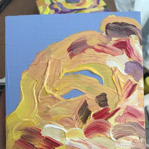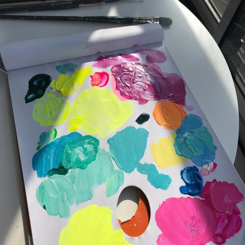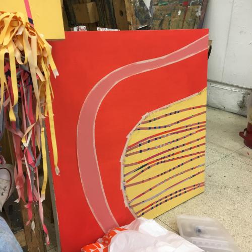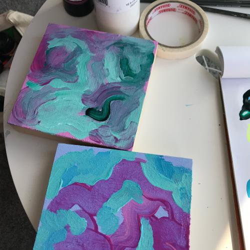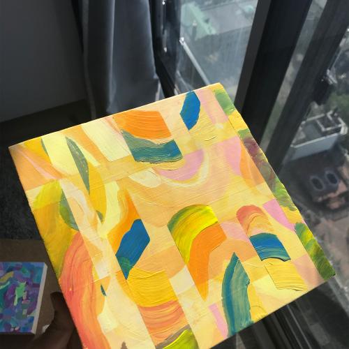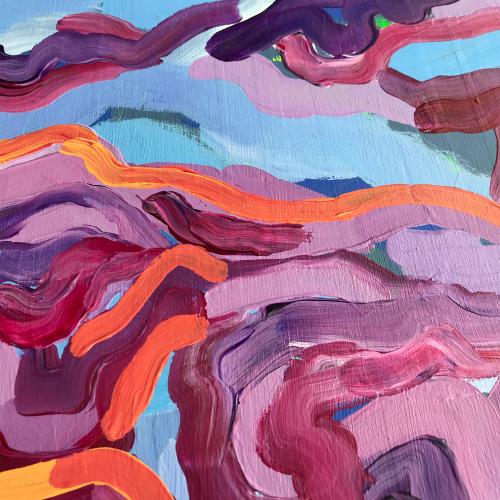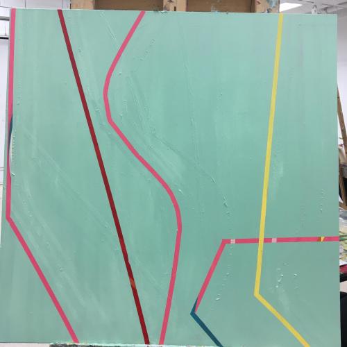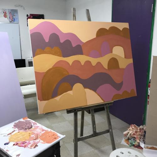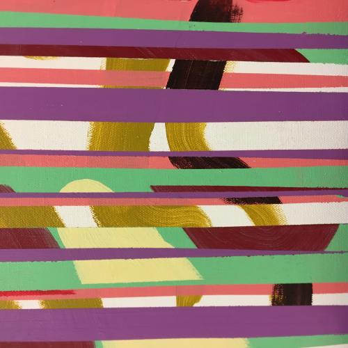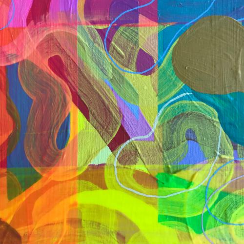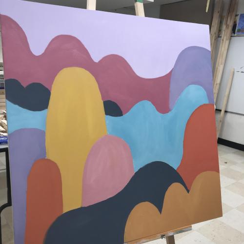 Mekayla’s art is always evolving and shifting from one thing to the next. Currently she is working in large scale abstract paintings primarily with acrylic and oil paint. She uses many layers to create landscape-esque forms and interesting compositions. Her art is intended to be accessible to people of all ages and levels of art knowledge. She creates visual adventures using colour combinations and shapes, as well as creating paths for your eye to travel around the work.